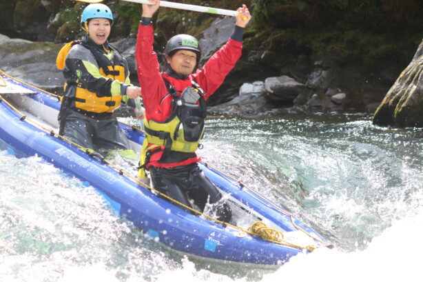 「できないができるようになる」のを楽しみながら進んでいきましょう。ラフティングを通して、日常にはない自然体験、お客様やガイド同士の人とのつながり、成長や達成感は自分自身の生きる力に大いに役に立つかと思います。
