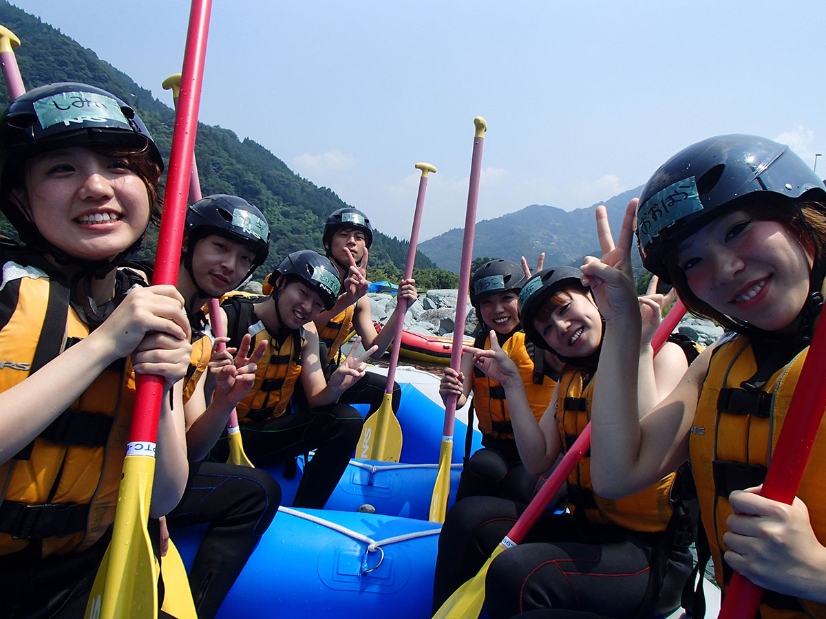 吉野川ラフティング を提供するリオブラボー! 四国の徳島県と高知県をまたいで流れる吉野川 。本当にリオブラボー!(川 最高!)なんです! 晴れやかな青空の下、晴れやかな表情でスタート スプラーッシュな感じで激流も漕ぎ抜けますよ フリーフォールな感じで岩から飛び込んだり たくさん遊んで吉野川を満喫 みんなでワイワイ シンクロでナイスチームワーク リオブラボー!(川最高!)なラフティングでしたね。 ぴー、ぼぼ、よっしー
