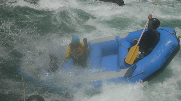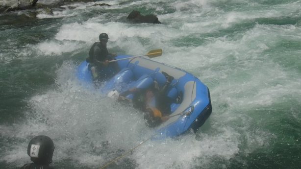 簡単に言うとジェットコースターを自分で動かさなければいけないのである。お客様で乗っている時には感じられない緊張感、プレッシャーが凄いのである。最初は激流の前は喉がカラカラ、足が震えそうな状態で挑みうまくできた時の緊張からの解放感は何事にも代えられません。ラフティングの良いところは周りにサポートしてくれるガイド仲間がいて安全体制が取れ危険を正確に認識しているのでバックアップしながら行う事が可能となります。自分一人で同じような刺激を得ようと思うと結構怖い思い痛い思いをする確率が高いですからね…