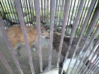 ベースの近くに、いつも大きなイノシシがいる檻があります。