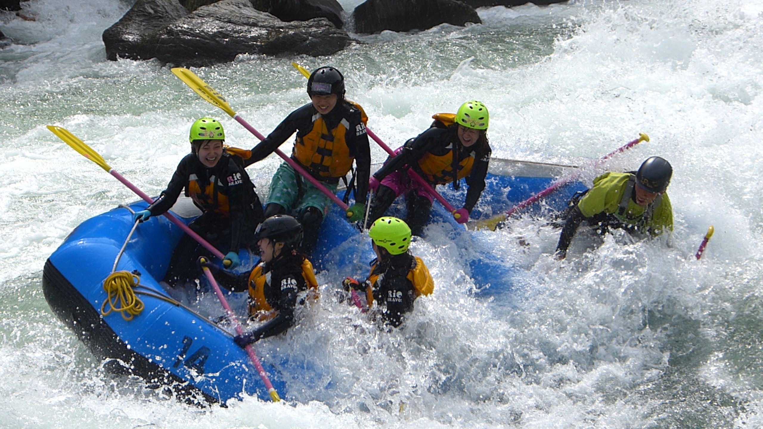 笑顔がいっぱい!! 大歩危半日ラフティングにて。