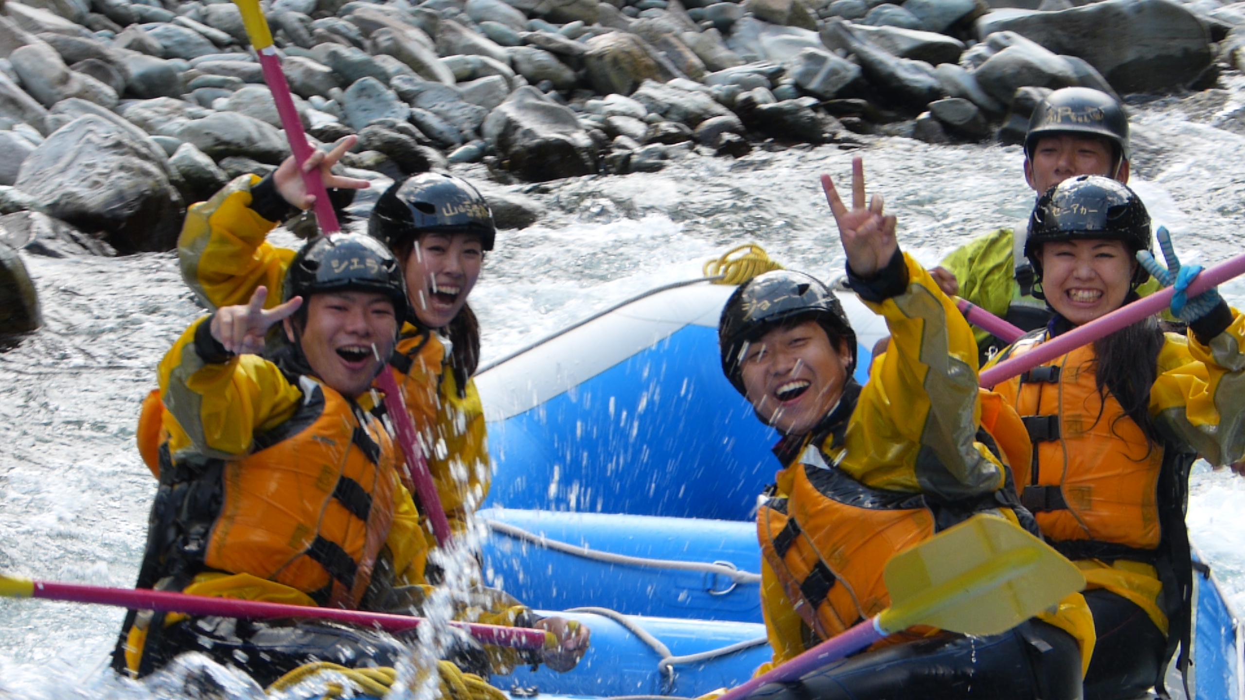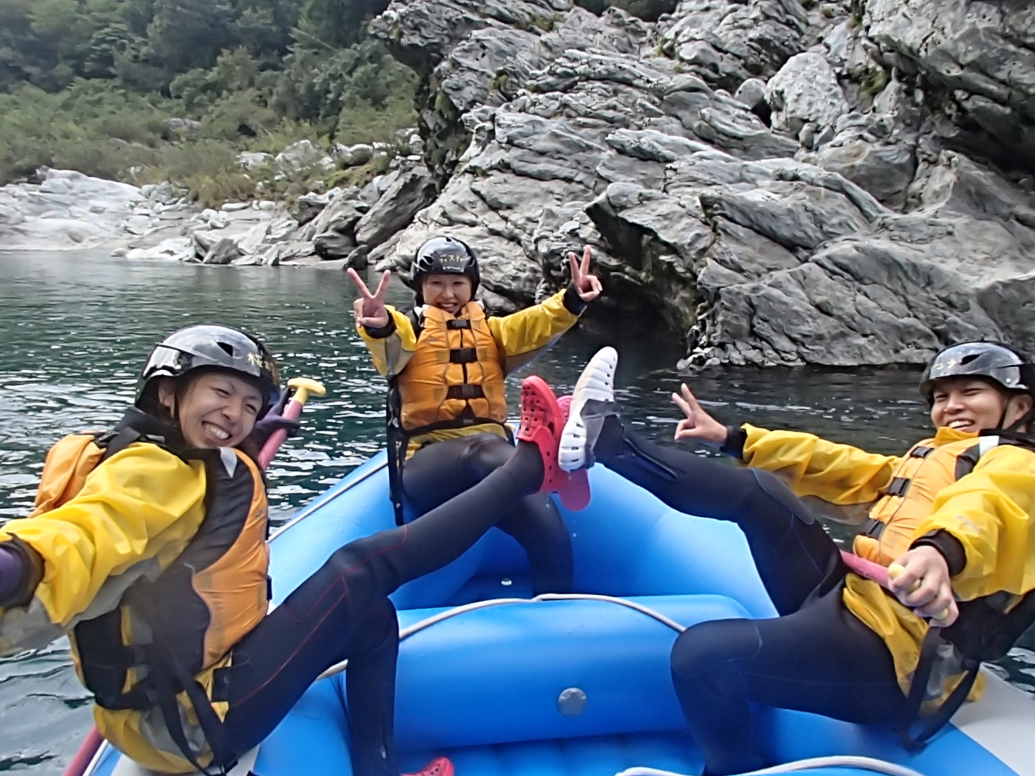 あらあら、こんなに笑顔がたくさんでございます!!一つ目の激流の後ですよ!!