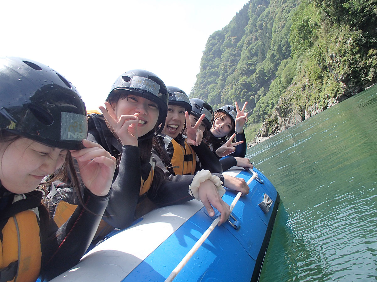 オール女子の貸切ボート 女性らしく、おしとやかだったはずが・・・ いつの間にやら、ボート上は戦場さながら。 声も『キャーキャー』から『オリャー!』に・・・ こんな露わな姿まで曝して・・・ でも、楽しいから、いっか(笑) やっぱ吉野川最高!ラフティング最高! 本当にリオブラボー!!! P-chan,Tetsu,Shibayan,Bobo