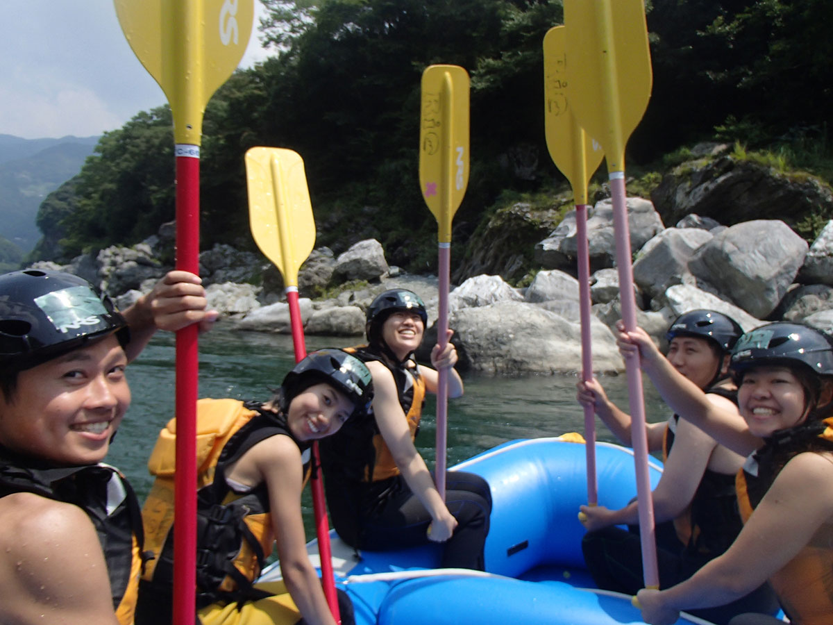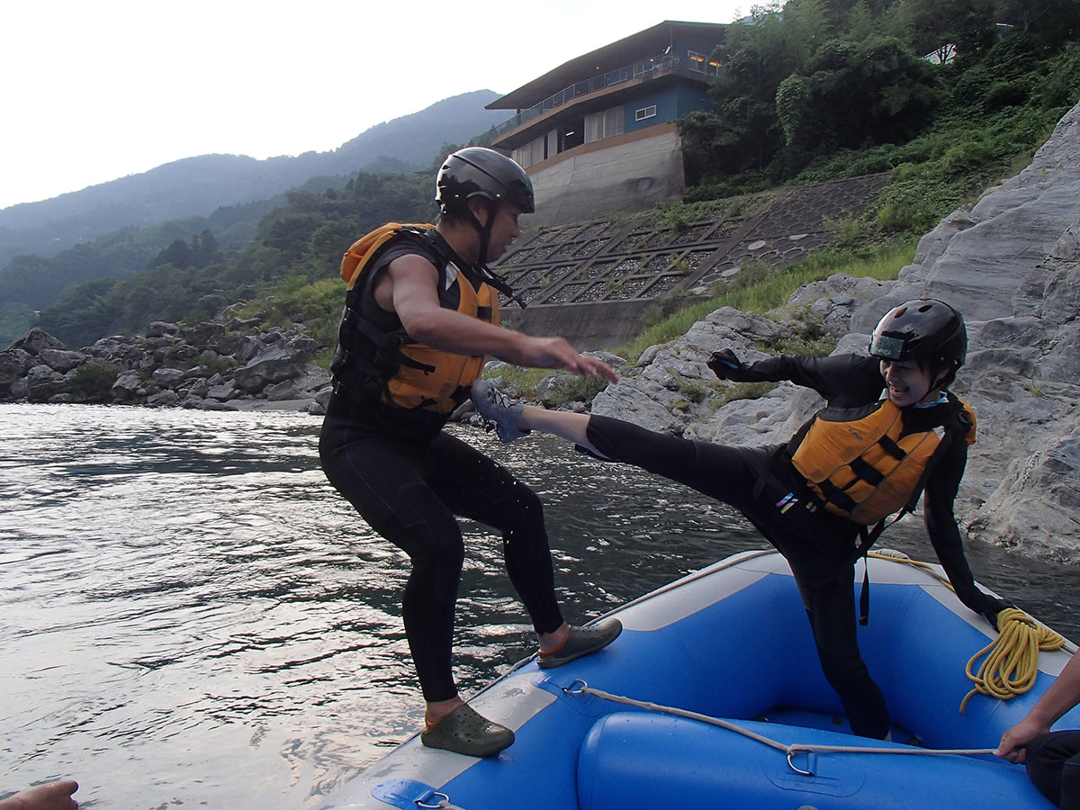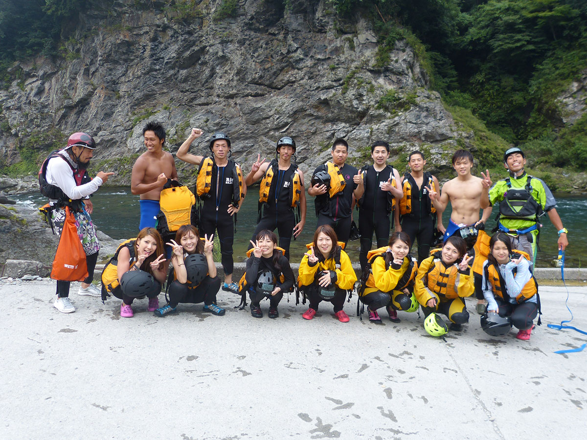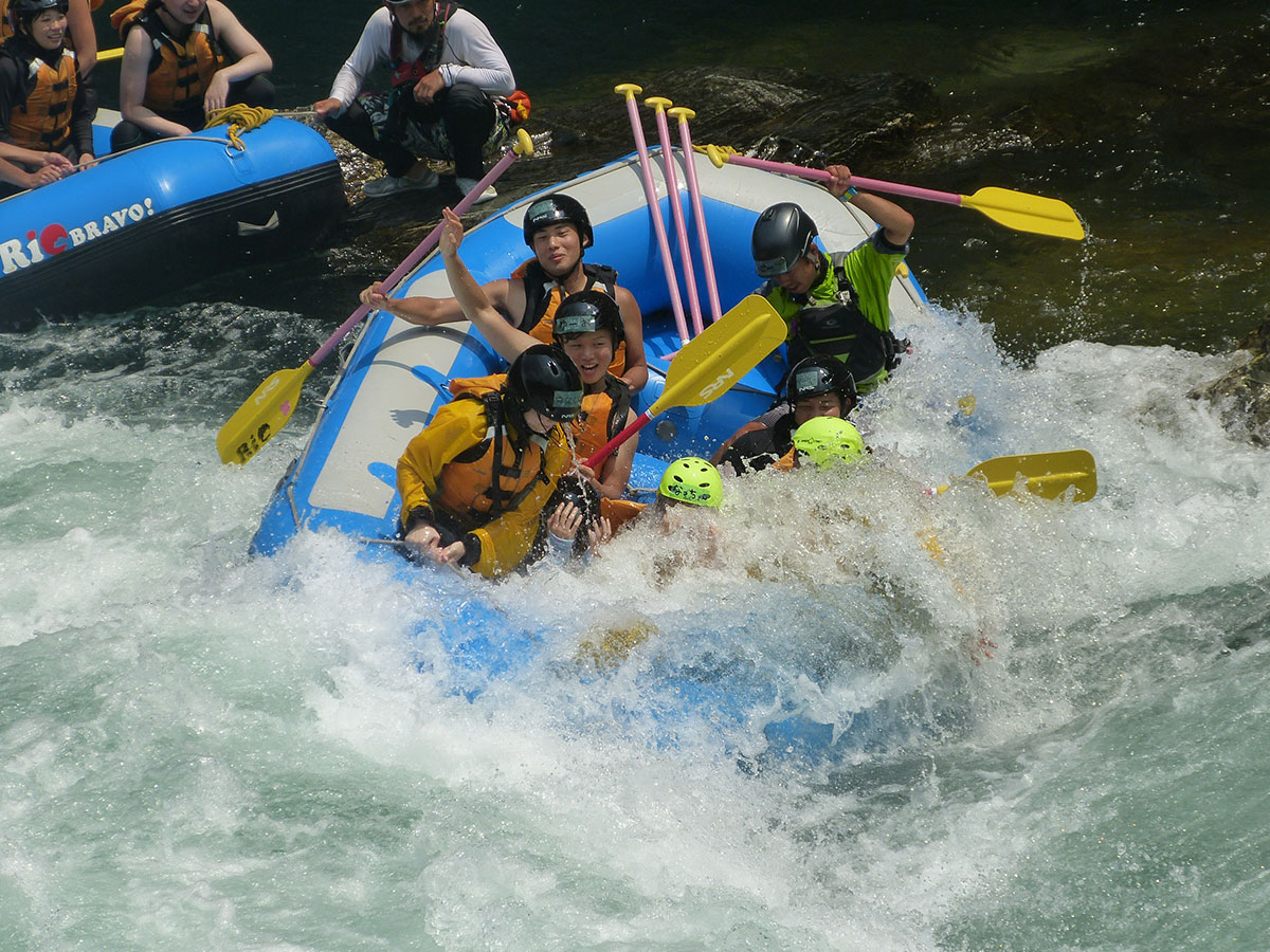 午後の半日コースいきなり豪快な激流からハイこんにちわ ボートが隠れるしぶきWildですね! こちらは川にいってらっしゃいと愛の喧嘩キック! ナイスな角度往年の長渕と蝶野を思い出します。 最後はみんな元気よくリオブラボーと!! 今日も思いっきり元気に遊んだ最高の休日なのでした。 みんなありがとうございました。 テツ・ボボ・YAH・ヨッシー・大将