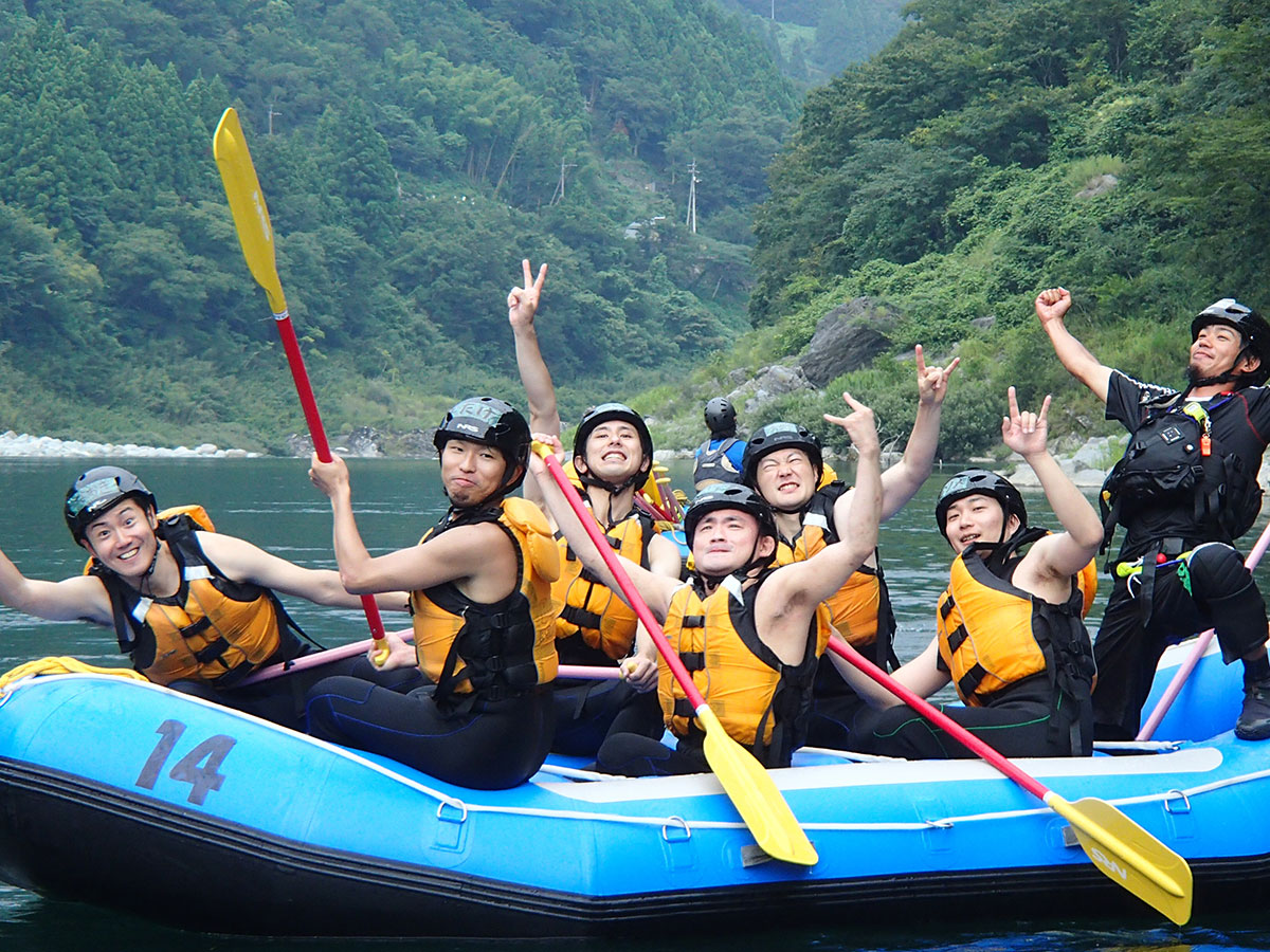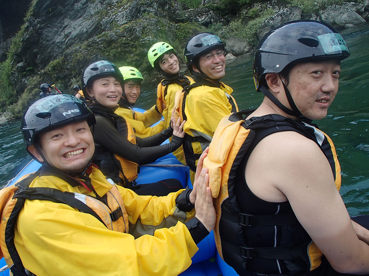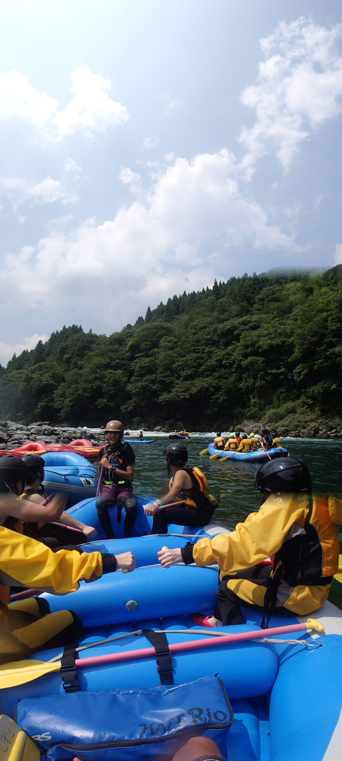 照りつける太陽 う~ん夏ですな~ 水遊びが楽しい今日この頃ラフティングに来たんだからハッチャケて遊ばなきゃ♪ こんな感じで落とされ~の★ 激しいだけでなくゆったりと吉野川に浸かるのもラフティングの醍醐味 流石日本一の綺麗さ!最高 みんな今日は思いっきり楽しめたかな?? 吉野川の楽しさはまだこんなもんじゃないよ!次回は1日の小歩危コースにぜひ遊びに来てね。 今日はみんなありがとうございました。 テツ・ボボ・シャック・P・大将