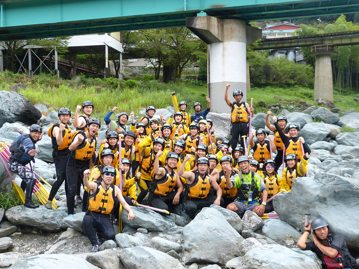 吉野川ラフティング を提供するリオブラボー! 四国の徳島県と高知県をまたいで流れる吉野川 。本当にリオブラボー!(川 最高!)なんです! ガイド・ボボのフレッシュなトークで幕開けした午後の大歩危コース。 みんなスタート前から気合い入りまくって、 吉野川に雄叫びが響き渡りました。 川に出たってそのいきおい止まらず、 遊ぶ遊ぶ。 はしゃぐはしゃぐ。 ゴールしても、まだ元気なみなさん。 今度は1日コースで発散しましょう!! P・テツ・ヤー・シバヤン・ボボ・大将・DT