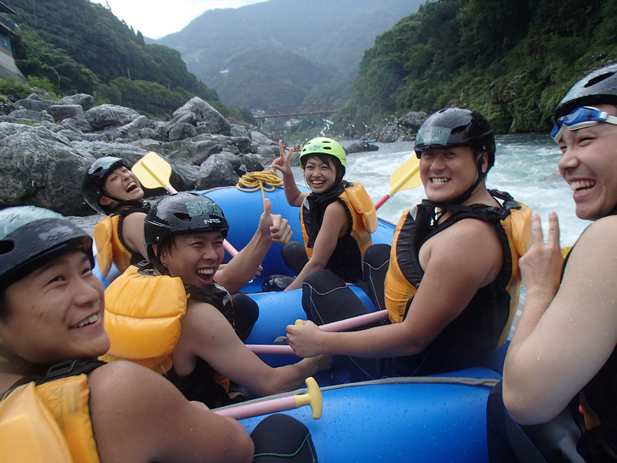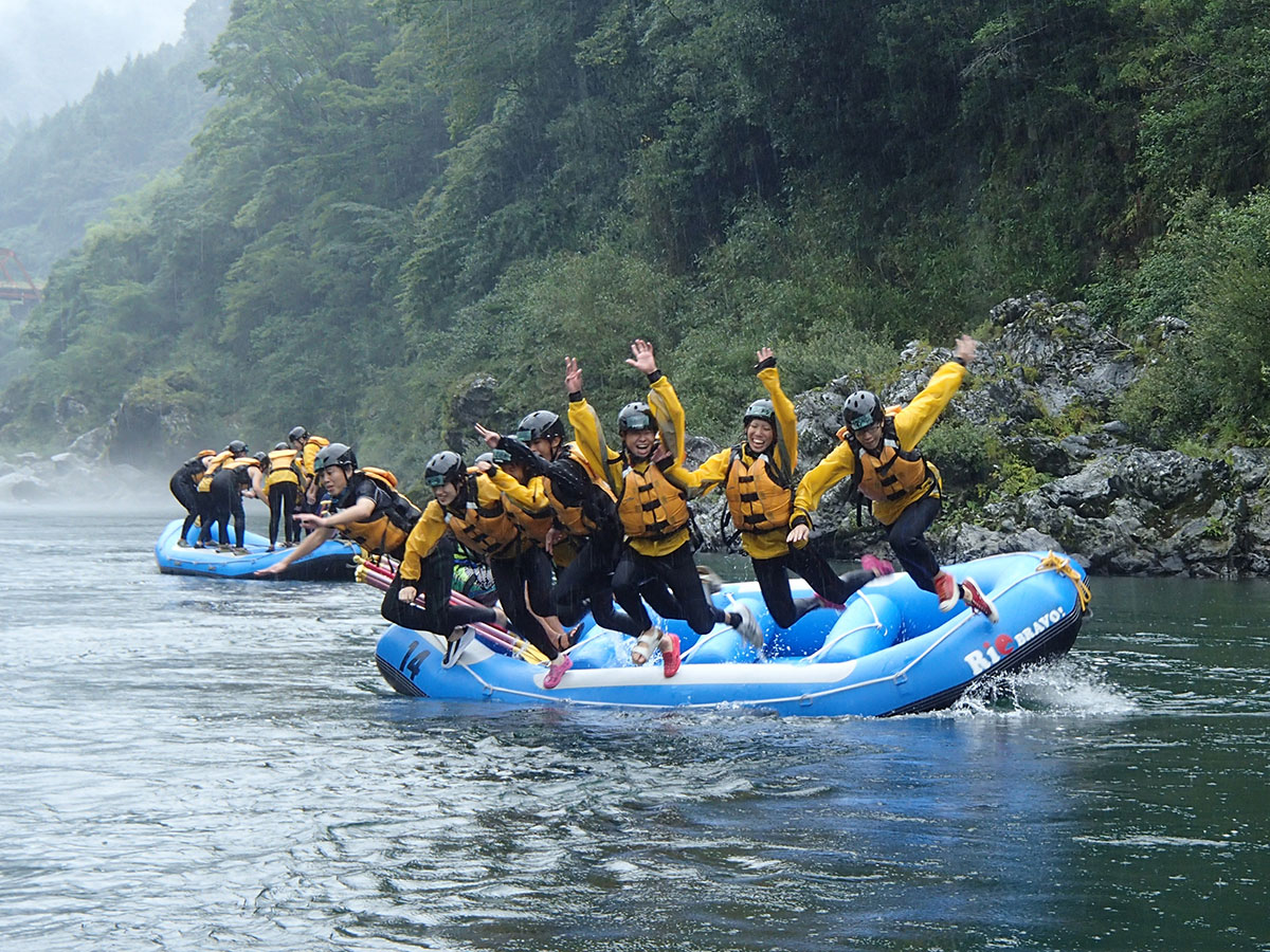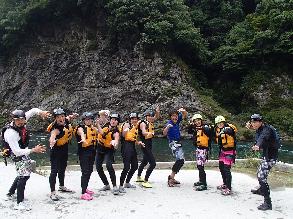 吉野川ラフティング を提供するリオブラボー! 四国の徳島県と高知県をまたいで流れる吉野川 。本当にリオブラボー!(川 最高!)なんです! こんにちは。楽しいメンバーが半日コースに挑戦です。 楽しく行きましょう!! 激流のど真ん中ですが、なかなか楽しそうに遊んでおります。 余裕でございますね! 最後に集合しました。 実は今から岩から飛込みします!! とーぶーぞー! では、また明日もお楽しみに!! やー ぼぼ しゃっく