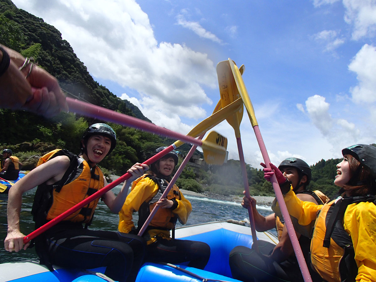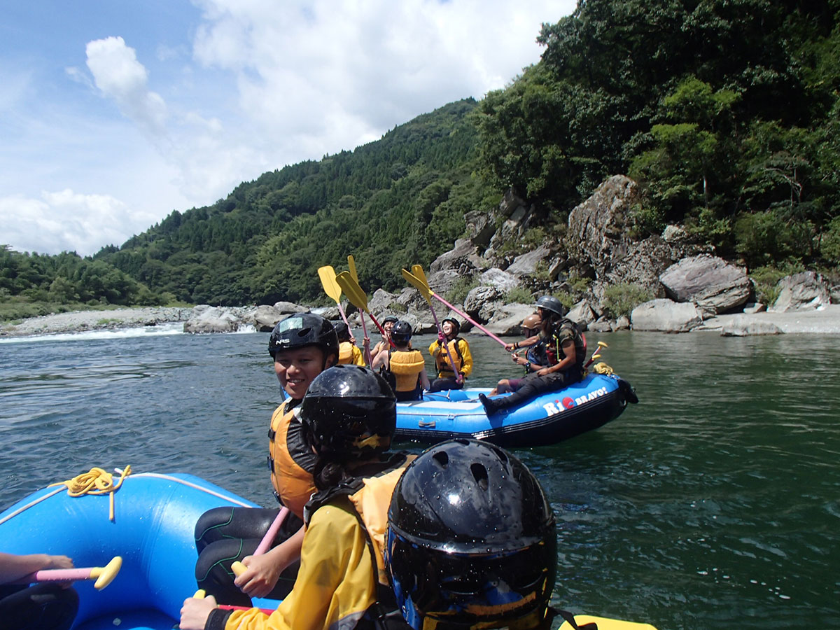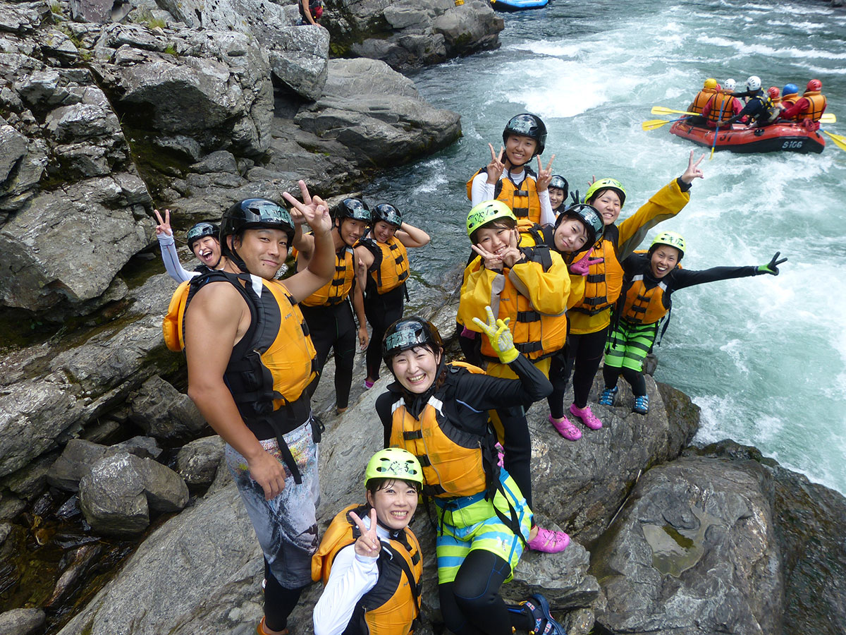 吉野川ラフティング を提供するリオブラボー! 四国の徳島県と高知県をまたいで流れる吉野川 。本当にリオブラボー!(川 最高!)なんです! こんにちは。楽しいメンバーが半日コースに挑戦です。 楽しく行きましょう!! 激流のど真ん中ですが、なかなか楽しそうに遊んでおります。 余裕でございますね! 最後に集合しました。 実は今から岩から飛込みします!! とーぶーぞー! では、また明日もお楽しみに!! やー ぼぼ しゃっく