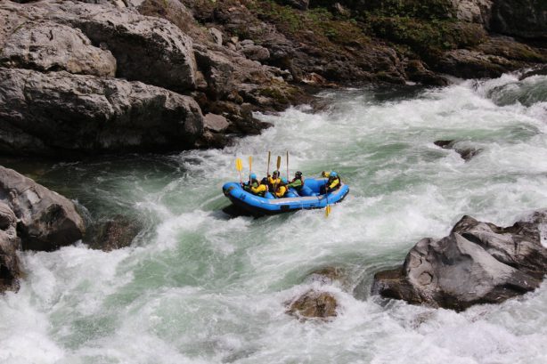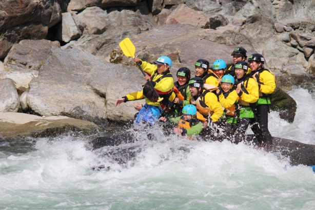 みんな仲良くボートの裏で激流にチャレンジ。大成功からの落とし合い(笑)