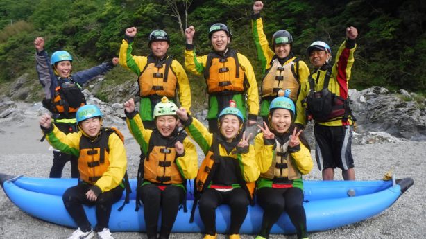 はじめましてでも同じボートに乗れば最高の仲間!それがラフティングの醍醐味でもあります。これからはガイドもおススメしている季節がはじまります。