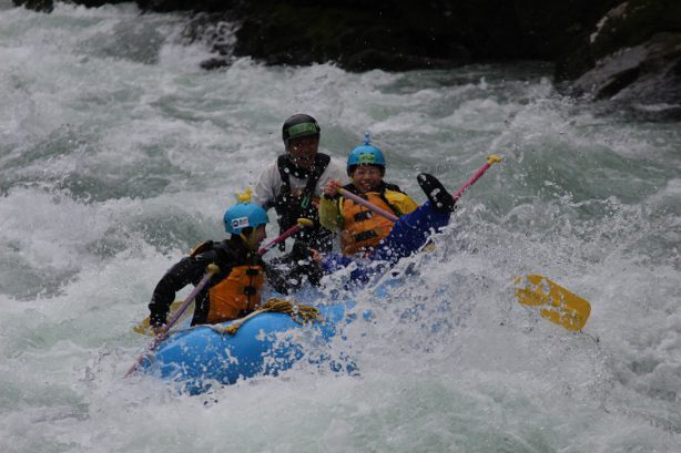 今日の半日コースは従姉妹同士が各地から集いラフティングに遊びに来てくれました。今日の半日コースは水量の関係上小歩危コースの前半で開催!