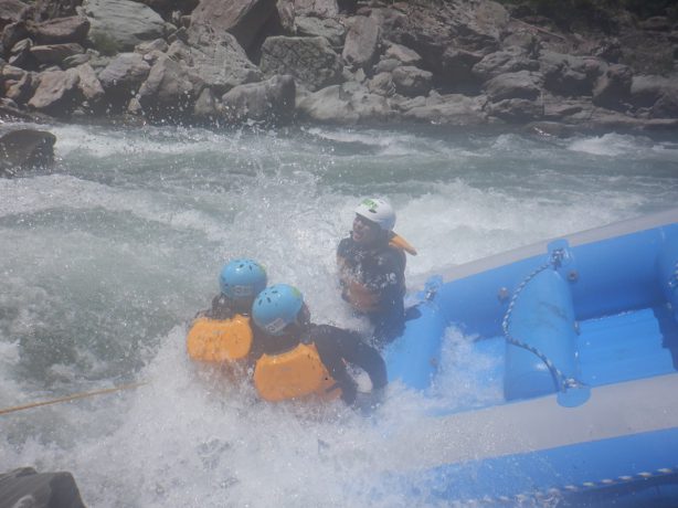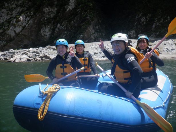 川原に着いたら川の安全に関しての説明を行い、各チームに分かれたら乗船して頂き、漕ぎ方の練習を行いラフティングツアーがスタートします。