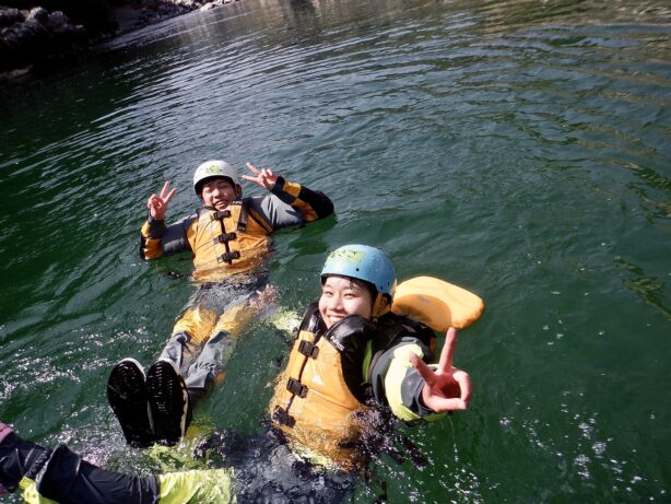 ラフティングには最高の天気です。水遊びもこの通り✌️ちなみにドライスーツで中は濡れずに快適😊