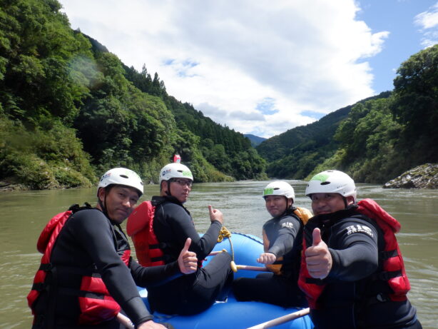 吉野川でラフティングをしているリオブラボーです。本当にリオブラボー(川最高)なんです!
