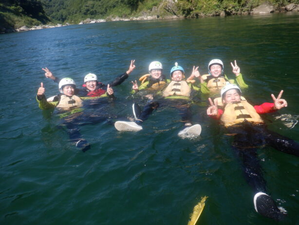 吉野川でラフティングをしているリオブラボーです。本当にリオブラボー(川最高)なんです!