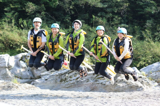 吉野川でラフティングをしているリオブラボーです。本当にリオブラボー(川最高!)なんです!