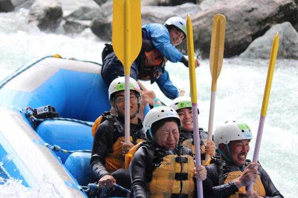 吉野川でラフティングをしているリオブラボーです。本当にリオブラボー(川最高!)なんです!