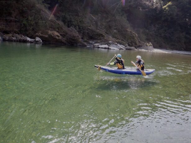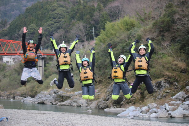 認定試験後は、大歩危コースにてガイド業務が始まります。基本的なコースでのお客様対応を実践し、経験を積んでステップアップしていきます。ガイドになった後の方が学ぶことが多く、チームメンバー、お客様に支えられながら、初めてガイドとして働くことで、実際の現場でさらに技術と自信を積み上げていきます。