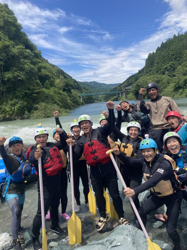 最大級の激流「国境の瀬」「10m超えの飛び込み」と貸し切りで晴天、水量マシマシ吉野川を堪能しましたね。
