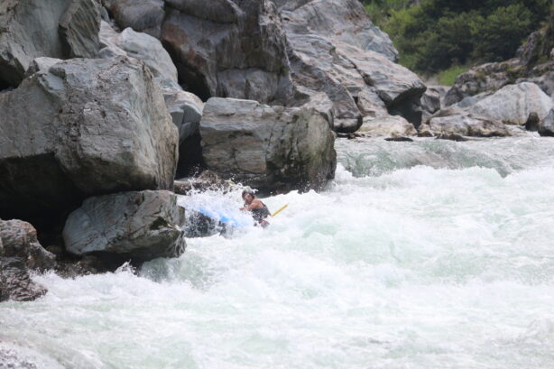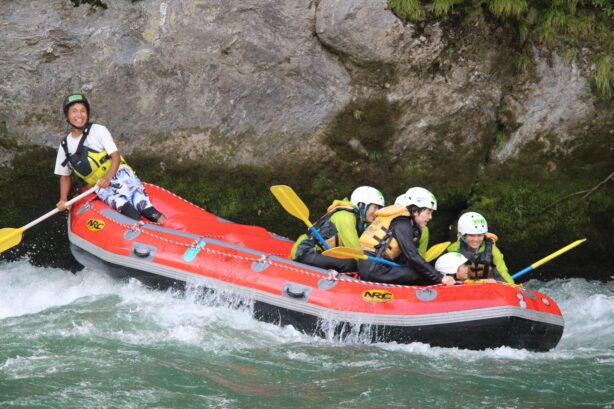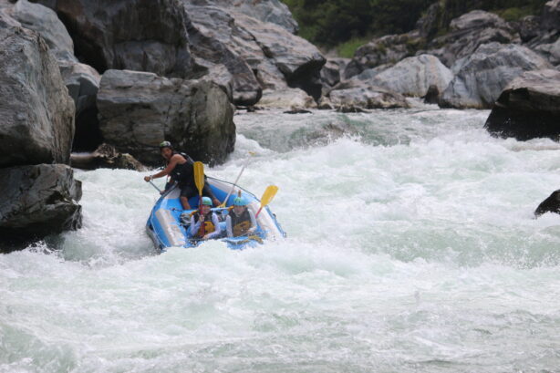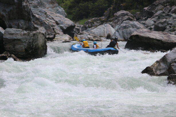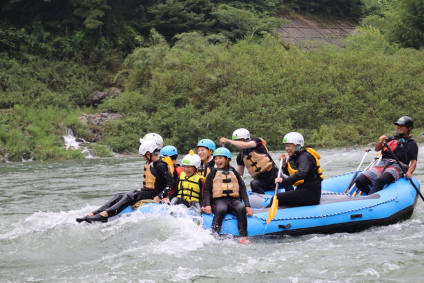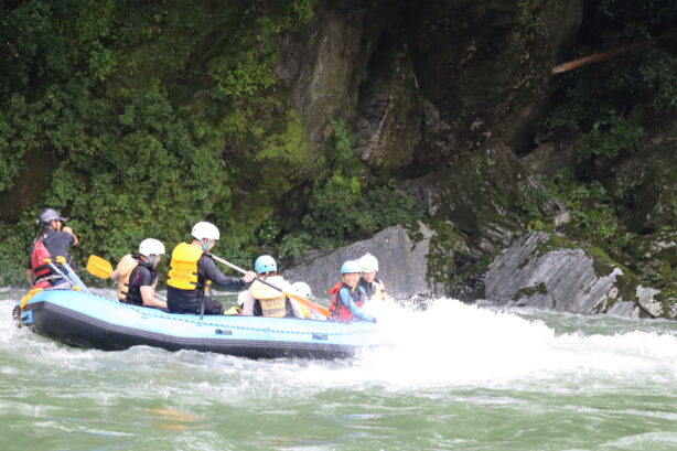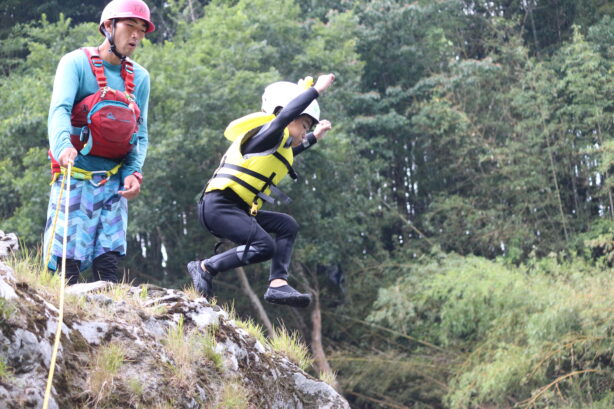 この二段の瀬に入った瞬間ガイドと息を合わせて飛び込んで良いタイミングを計っています