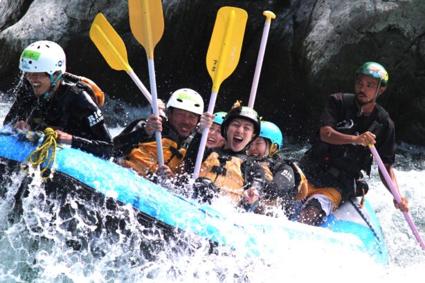 吉野川でラフティングをしているリオブラボーです。本当にリオブラボー(川最高!)なんです!