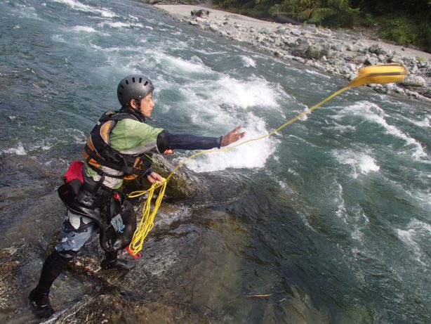 - ラフティングガイドの仕事では、お客様の安全を守るために普通救命講習資格が必須です。水辺での仕事になるため、万が一お客様の生命に危機が及んだ場合に対応するために必要な知識取得となります。