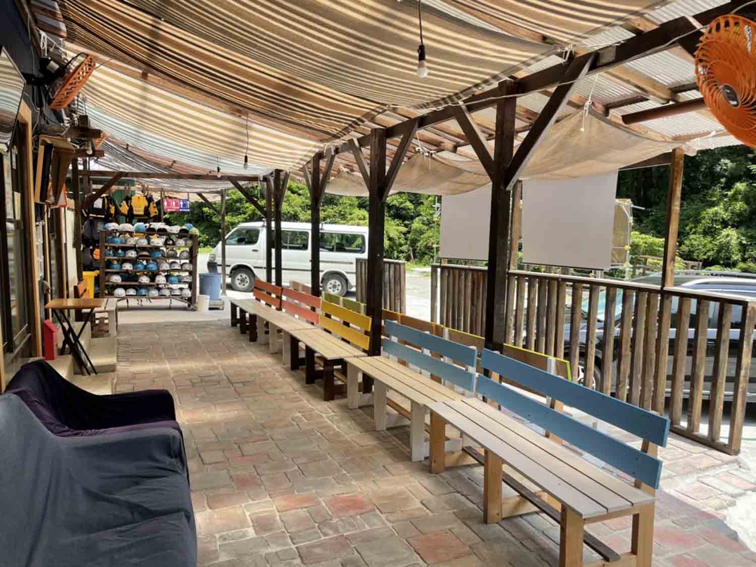 遠路はるばるお疲れ様です。到着したら、山の新鮮な空気を思いっきり吸って人心地つけよう。都会とは違った山に囲まれた景色がリラックスさせてくれます。落ち着いたら、代表者が受付を済ませましょう。ラフティングが始まるまで、疲れを取りながらゆっくりお茶でも飲んでリラックスして待ちましょう。さぁ~、日本有数の吉野川、大歩危の激流に、もうすぐ出会える。