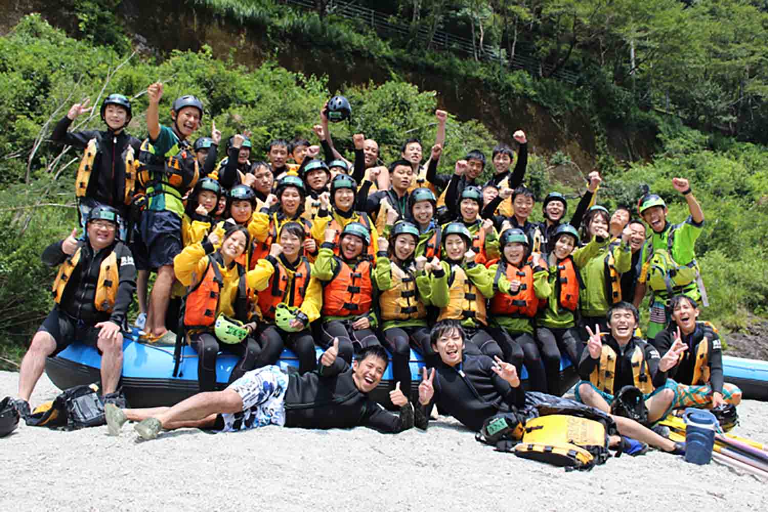 - 当社のラフティングツアーでは万が一のため国内旅行傷害保険が必ずかけられています。(ツアー料金に含む)